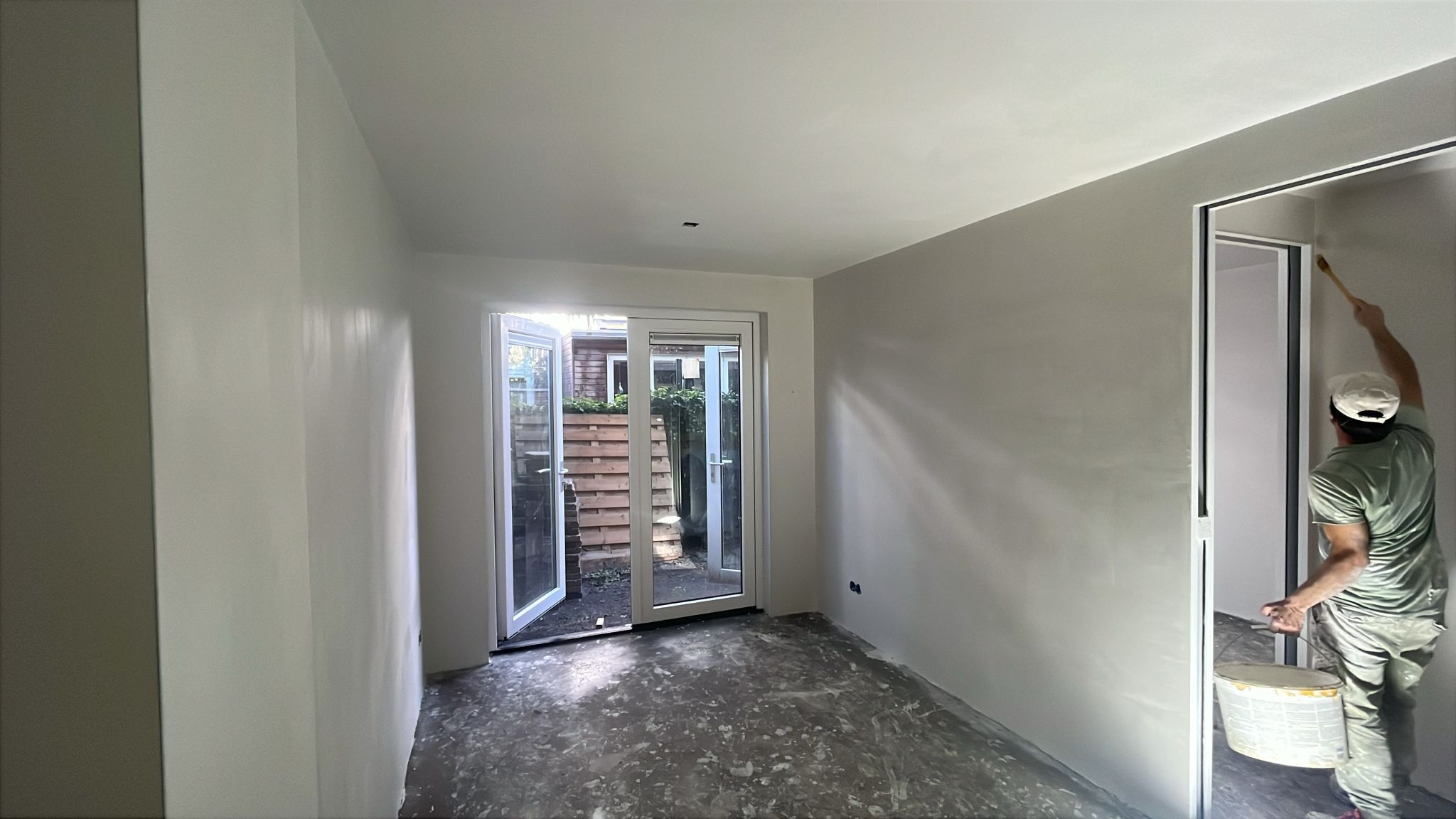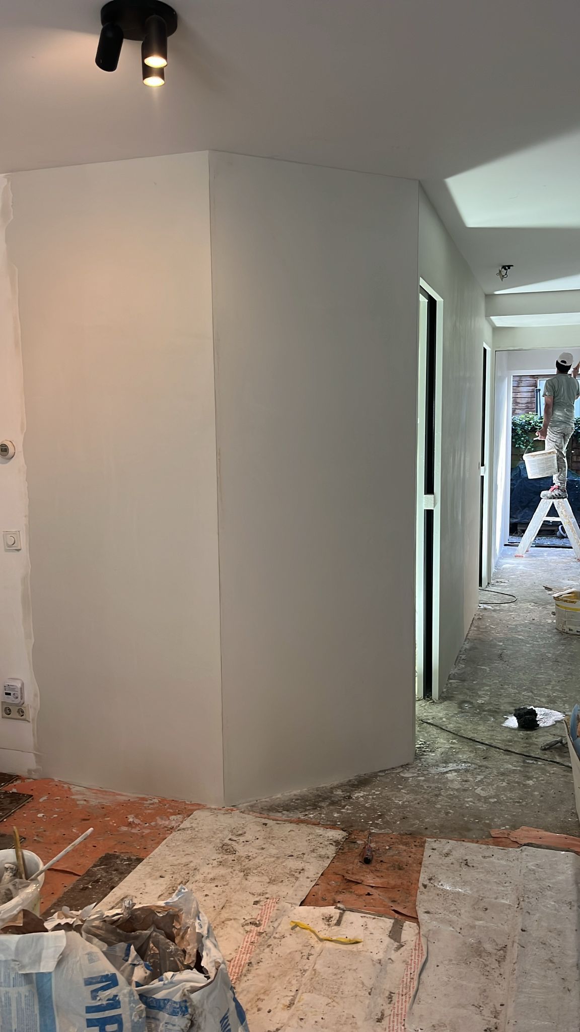 De pui aan de tuinzijde bestaat uit dubbele openslaande deuren met HR++ glas, passend bij het karakter van Amsterdam-Oost. Alle wanden en plafonds zijn volledig gestuct en gesaust, waardoor een strakke en moderne uitstraling ontstaat. Deze rustige basis zorgt ervoor dat de nieuwe ruimte multifunctioneel inzetbaar is, precies zoals we bij andere projecten aanbouw Amsterdam-Oost realiseren.