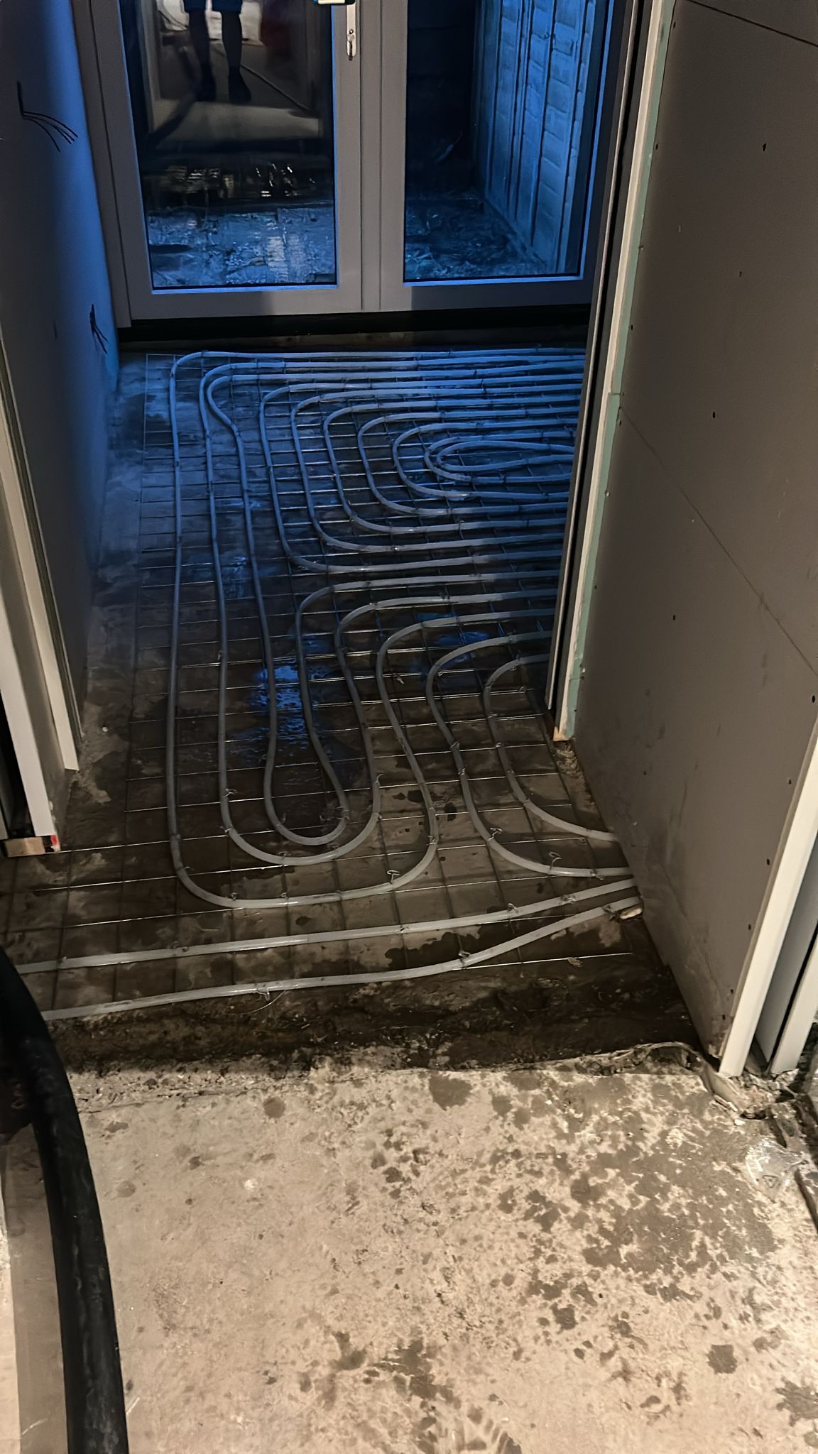 Binnen is een compleet nieuw vloerverwarmingssysteem aangelegd met lage temperatuur verdeler, perfect voor een toekomstige warmtepomp. Elektra, ventilatie en loze leidingen zijn geïntegreerd in de nieuwe wandopbouw, zodat de ruimte direct bruikbaar is.