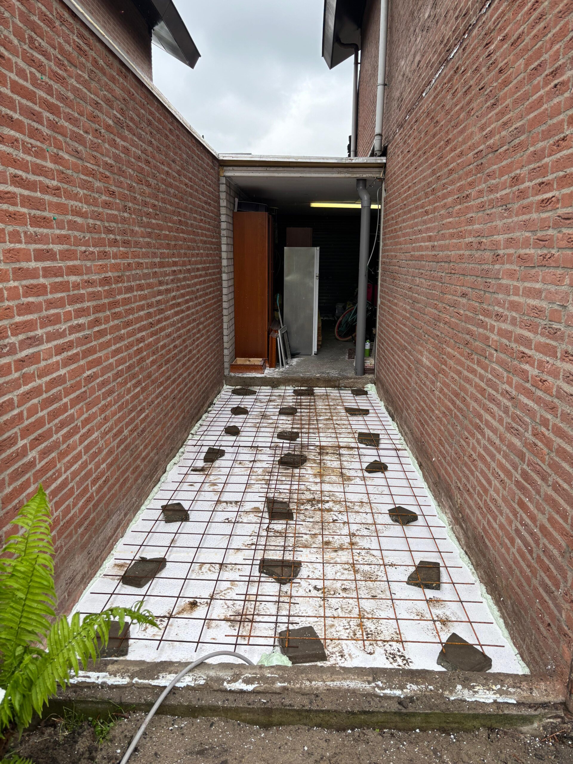 Eerst is de bestaande achtergevel volledig geopend en tijdelijk opgevangen. Daarna plaatste Verbouw Gigant een stalen ligger (HEA-profiel) om de nieuwe brede doorgang constructief veilig te maken. De fundering is opnieuw berekend en uitgevoerd met geïsoleerde funderingsstroken en vloerplaten, passend bij de bodemgesteldheid van Rotterdam.