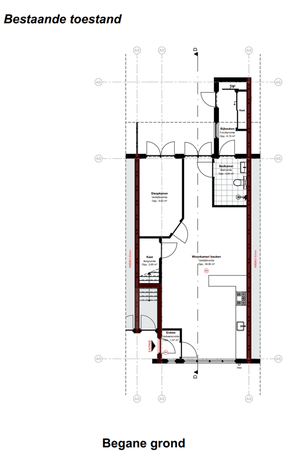 Berekening met enkele doorbraak€ 950 – € 1.400Draagbalk en geveldoorbraak met stempelplan