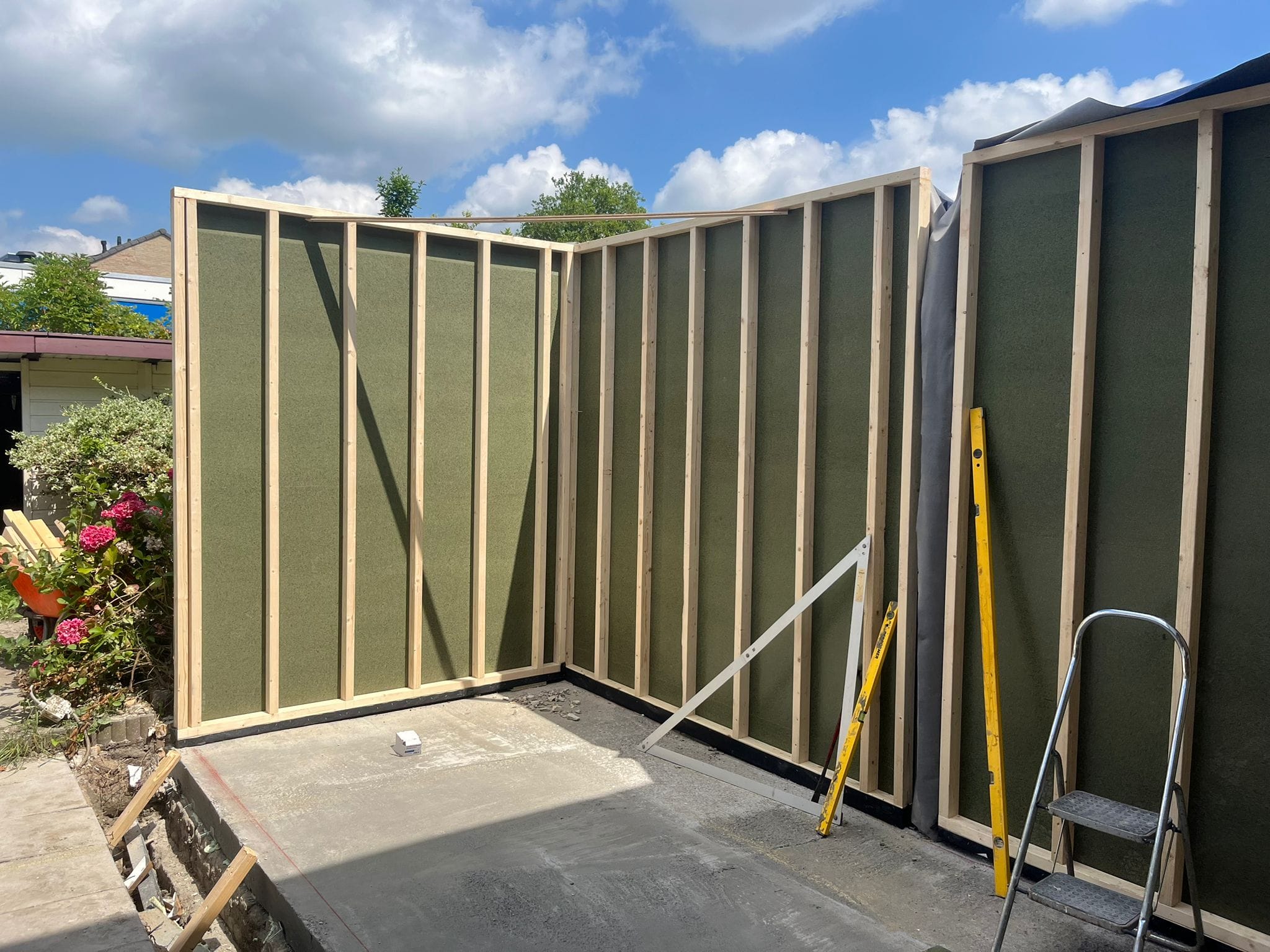 Bij bestaande uitbouwen adviseren wij meestal een eigen fundering, los van de buren. Zo voorkomt u problemen bij toekomstige aanpassingen of bij verschil in belasting.