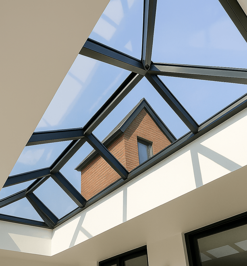 Een zuinige lichtstraat begint bij het ontwerp. Met Plaatsing prefab dak plannen we de sparing, draagkaders, afschot en folies vooraf. Zo wordt de aansluiting in één keer waterdicht en luchtdicht. Dat voorkomt tochtlekken en koudebruggen en scheelt energiekosten. We kiezen daarbij goed isolerend glas (HR++ of drievoudig) en, waar nodig, zonwerend glas. Heeft de lichtstraat een te openen deel, dan kunt u snel spuien: even open, warmte en vocht eruit, zonder comfortverlies.