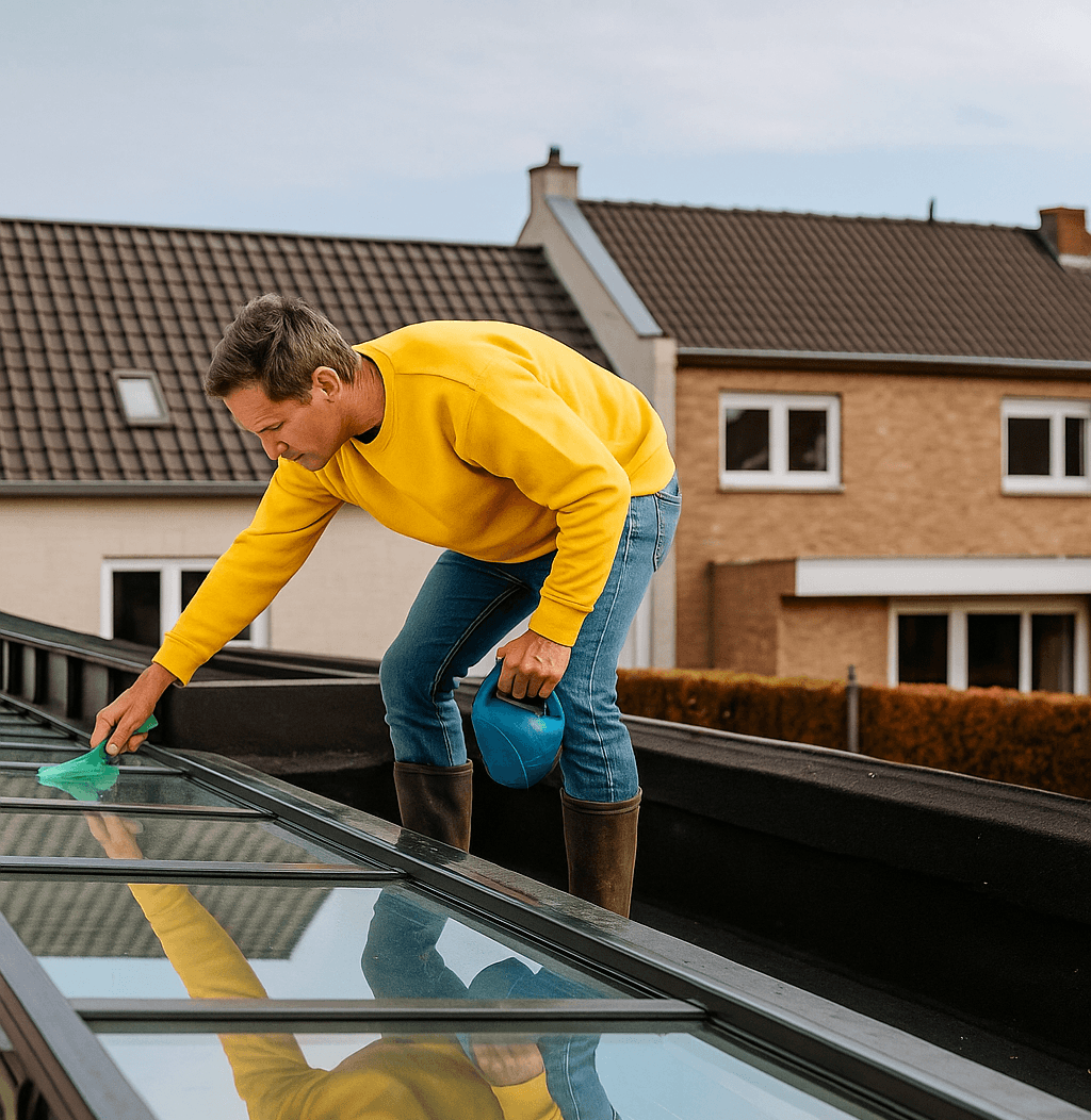 Een glazen dak blijft alleen veilig als onderhoud slim en veilig gebeurt. Richt de werksituatie in met valbeveiliging, PBM, duidelijke loopzones (nooit op glas), glasbokken voor transport en plan reiniging bij droog weer. Zo beschermt u zowel mensen als de kwetsbare randaansluitingen (rubbers, kit, coatings).