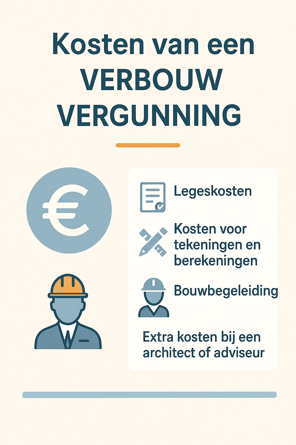 De kosten voor een verbouw vergunning aanvragen bestaan voornamelijk uit leges die u aan de gemeente betaalt. Deze liggen doorgaans tussen de 2 en 4 procent van de totale bouwsom. Voorbeeld: bij een verbouwing van € 40.000 betaalt u gemiddeld € 1.200 aan leges.